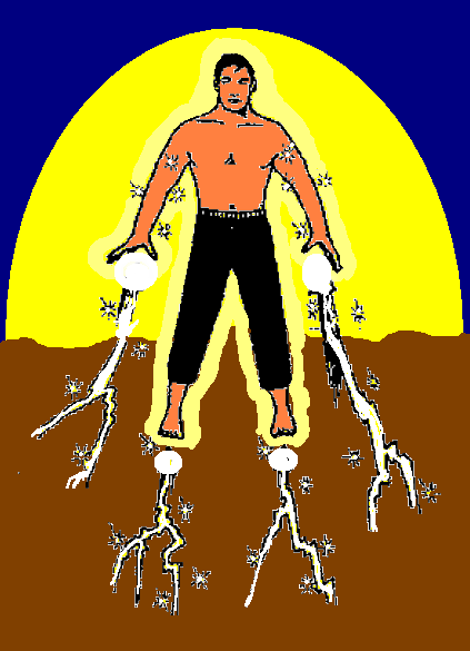 - While standing, slowly turn your hands, so that your fingers face down towards the ground. Sink your energy deep into the earth. Imagine it projecting like lightning bolts going all the way to the earth’s core.